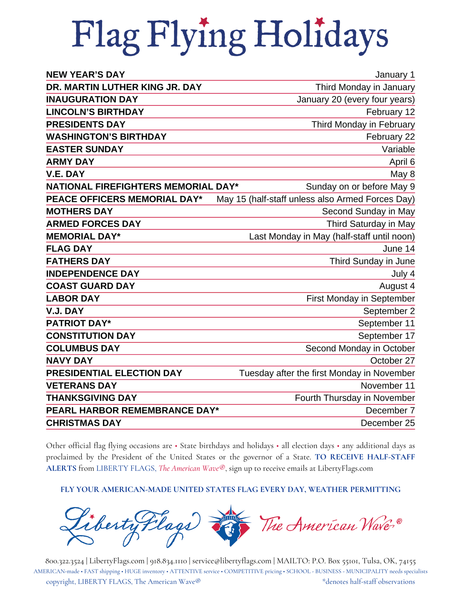 Please look for The American Wave® wherever you see the LIBERTY FLAGS brand.