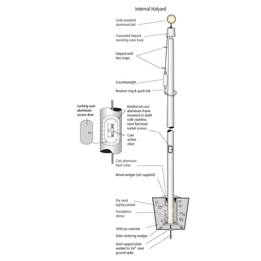 Landmark Residential Flagpole - Internal Halyard
