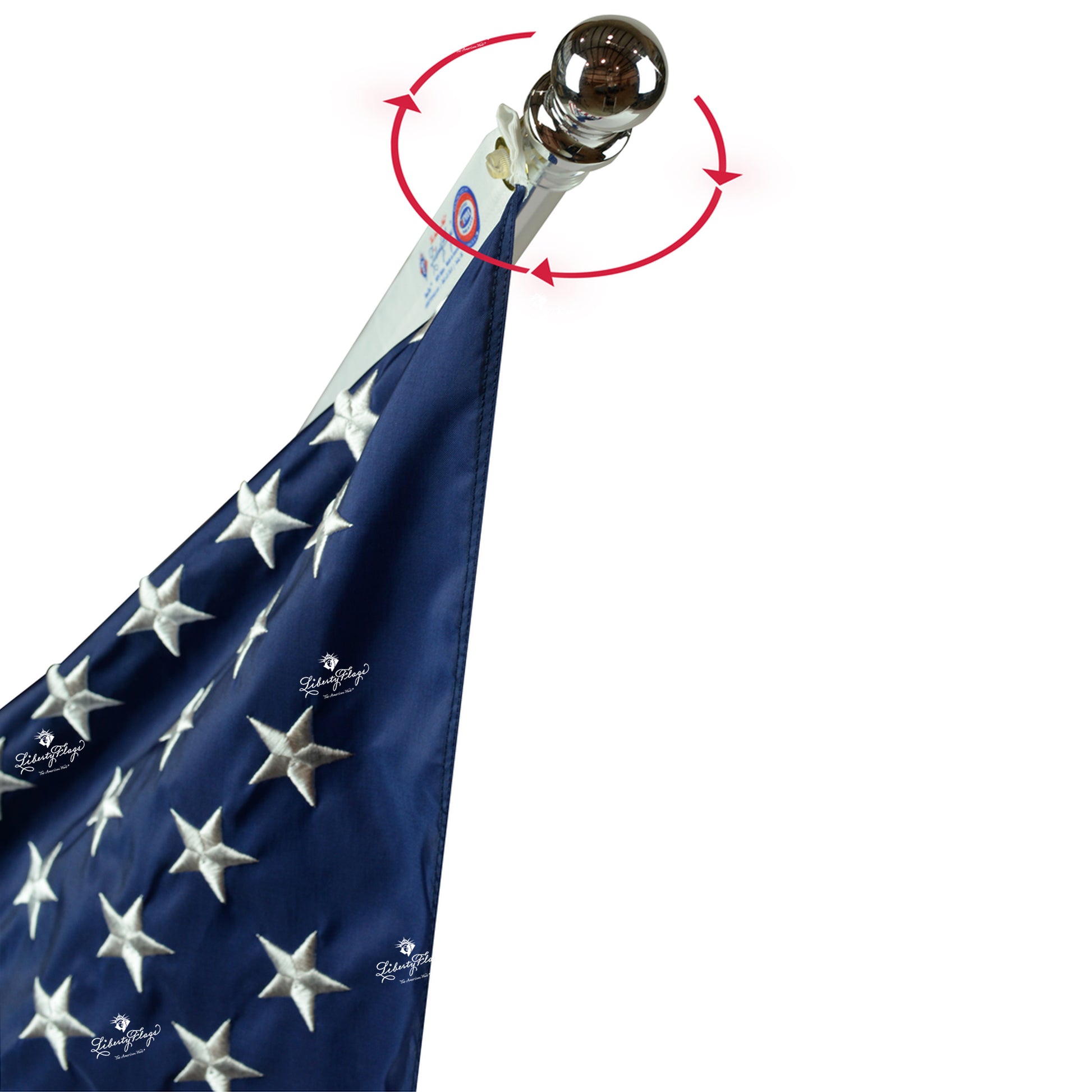 What a great idea! No more tangled flags when you display any nylon flag or banner up to size 3'x5' with this set. Specially engineered "spinning" ball bearing pole keeps flag hanging free. Bracket is designed for installation on a vertical surface (wall, post, etc.) Fastening hardware accommodates a nylon flag with heading & grommets or banner made with banner and concealed mounting tabs. Due to fabric weight US WaveCrest(TM) polyester flags are not suitable for spinning flagpoles.