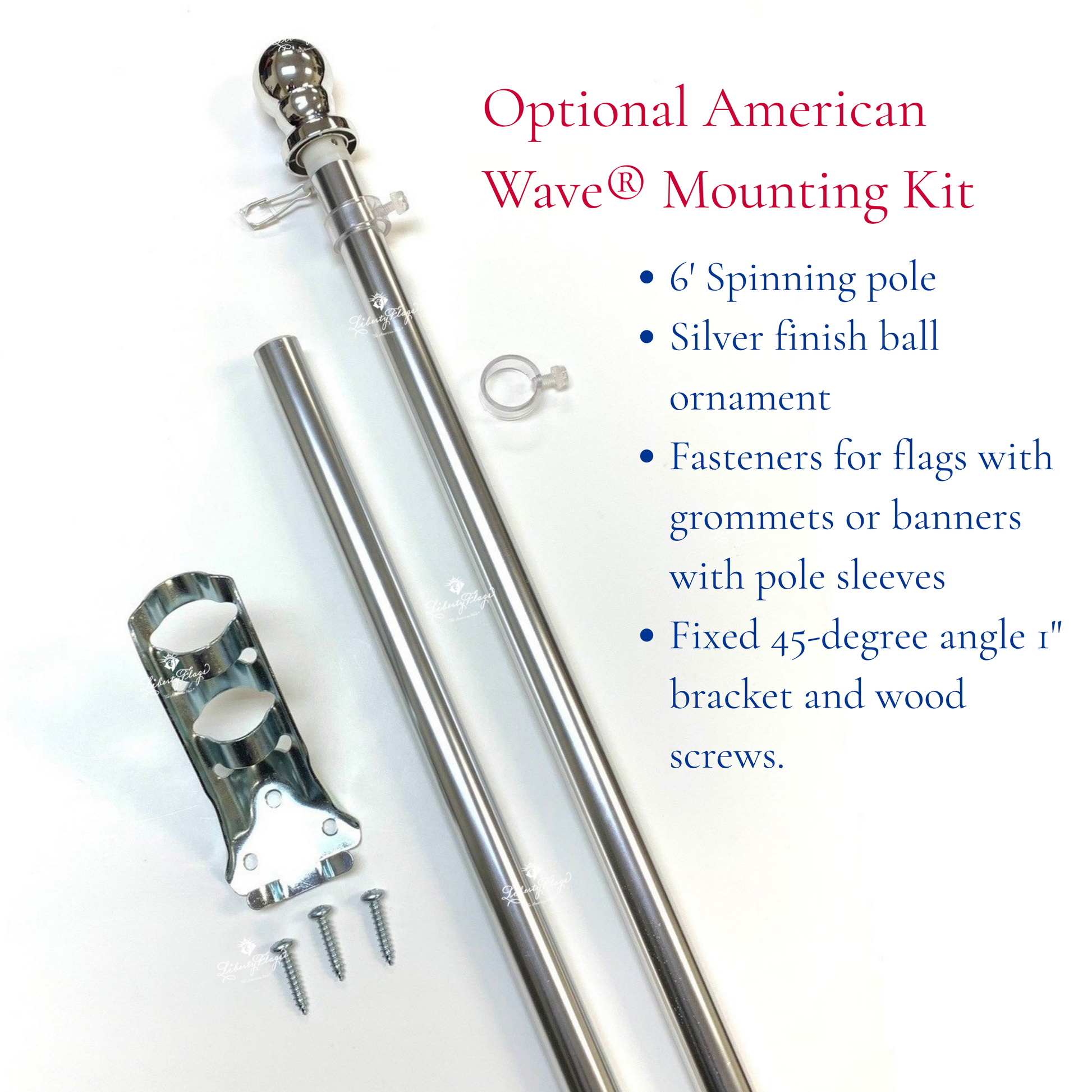 **Optional Mounting Kit Available — Upgrade your package by adding an American Wave® Mounting Kit, complete with a tangle-free American Wave® spinning pole, stamped steel bracket, and all the necessary hardware. Select your preferred option above.