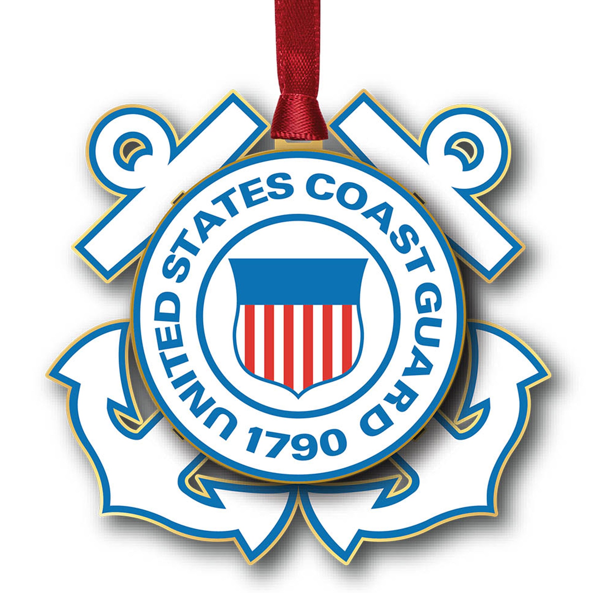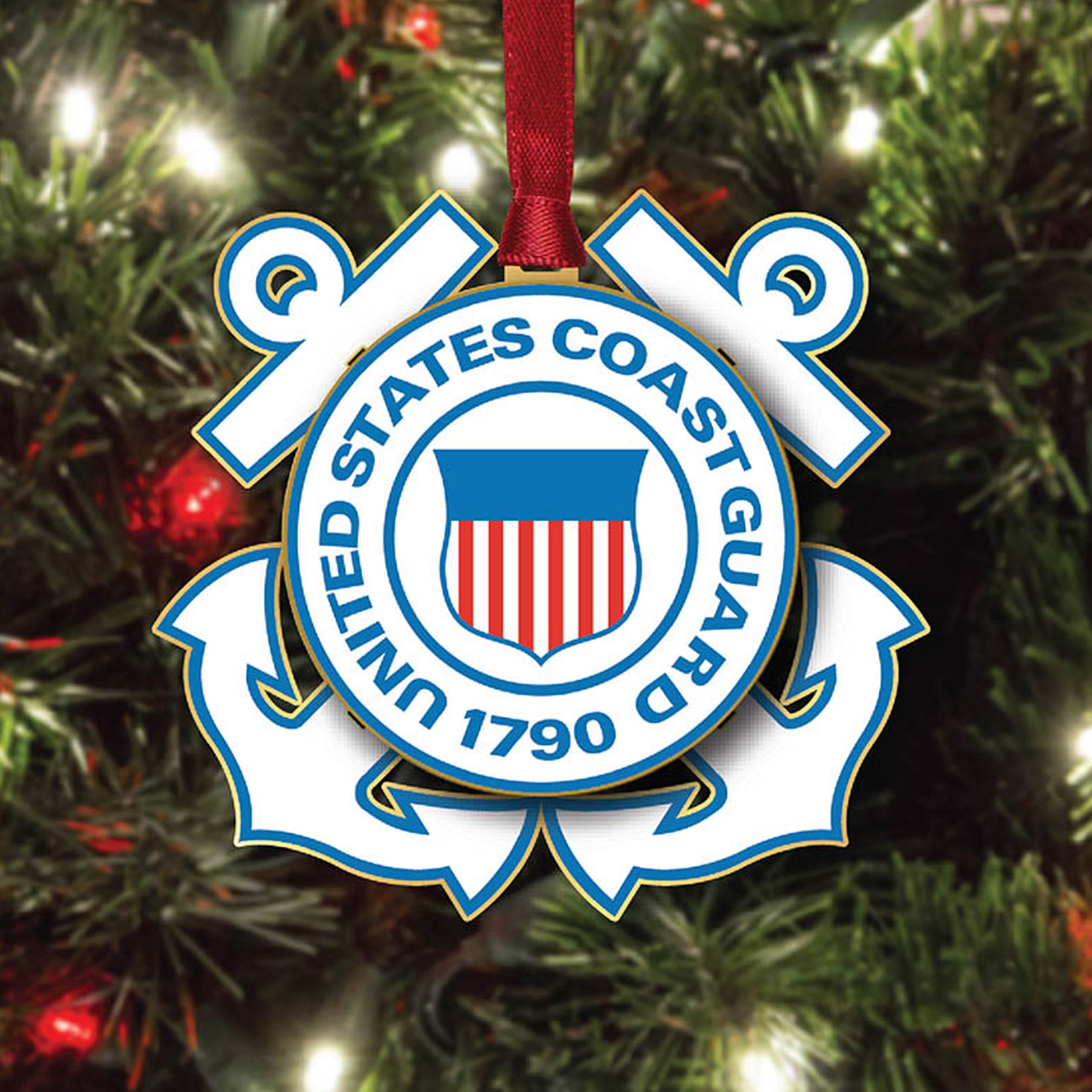 This ornament elegantly showcases the Seal of the United States Coast Guard, outlined and highlighted with gold.