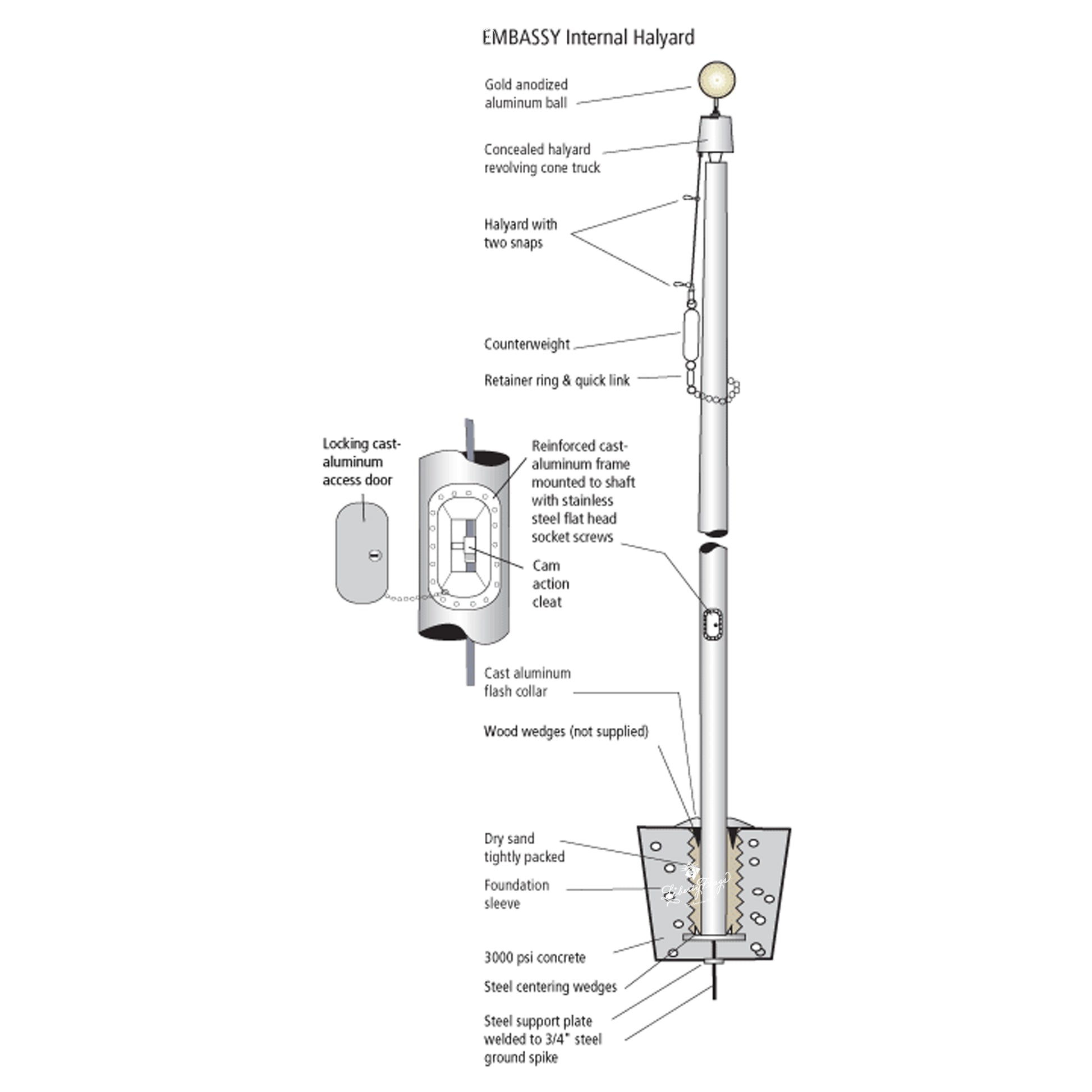 The EMBASSY is a commercial, internal halyard rope-based flagpole.
