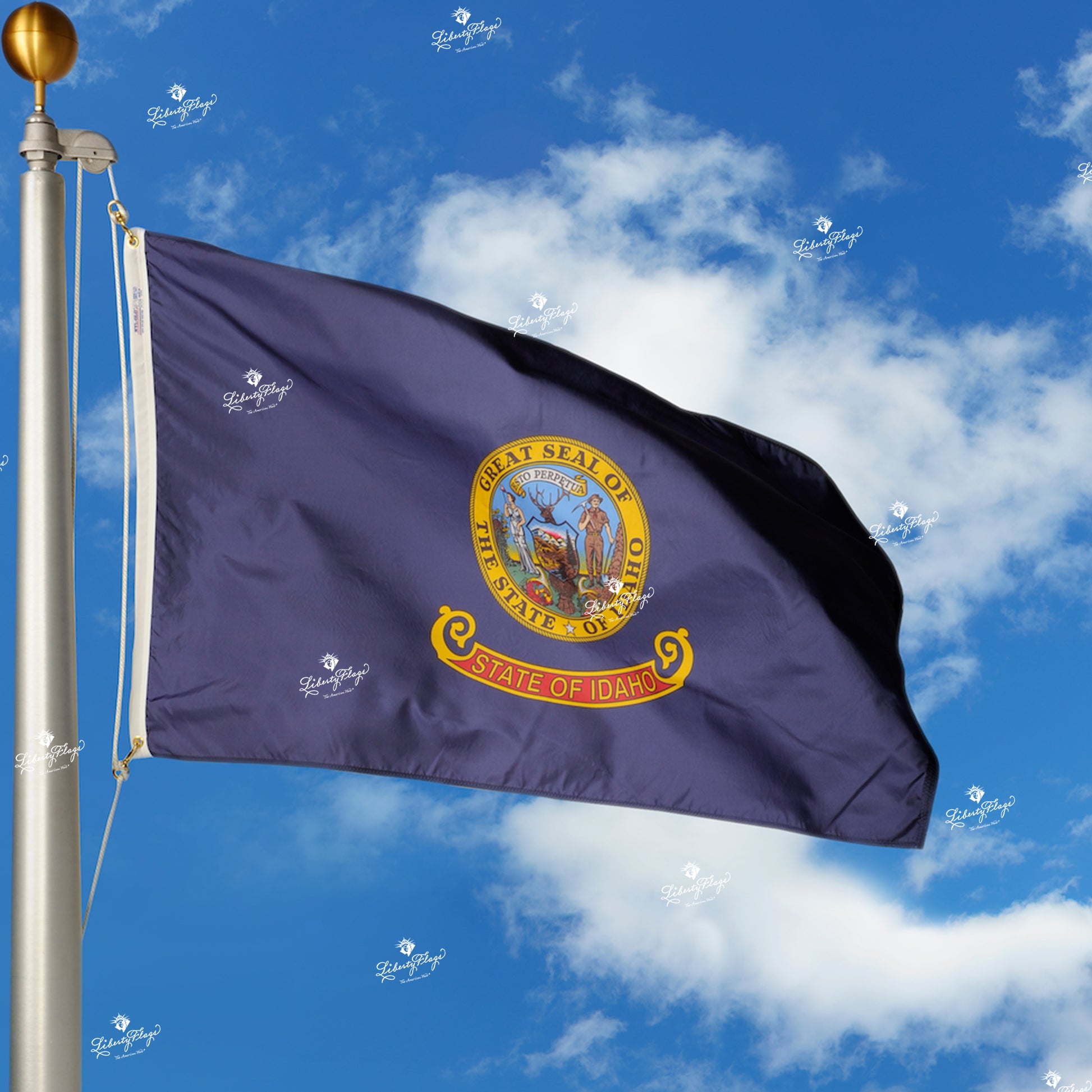 Liberty Flags’ Polyester Idaho flag is made from 2x2-ply spun and woven polyester fabric. This fabric is approximately 30% heavier than nylon and the unique fabric weave allows some air to pass through the flag as it flies in the wind. Best performing in high winds and extreme weather.