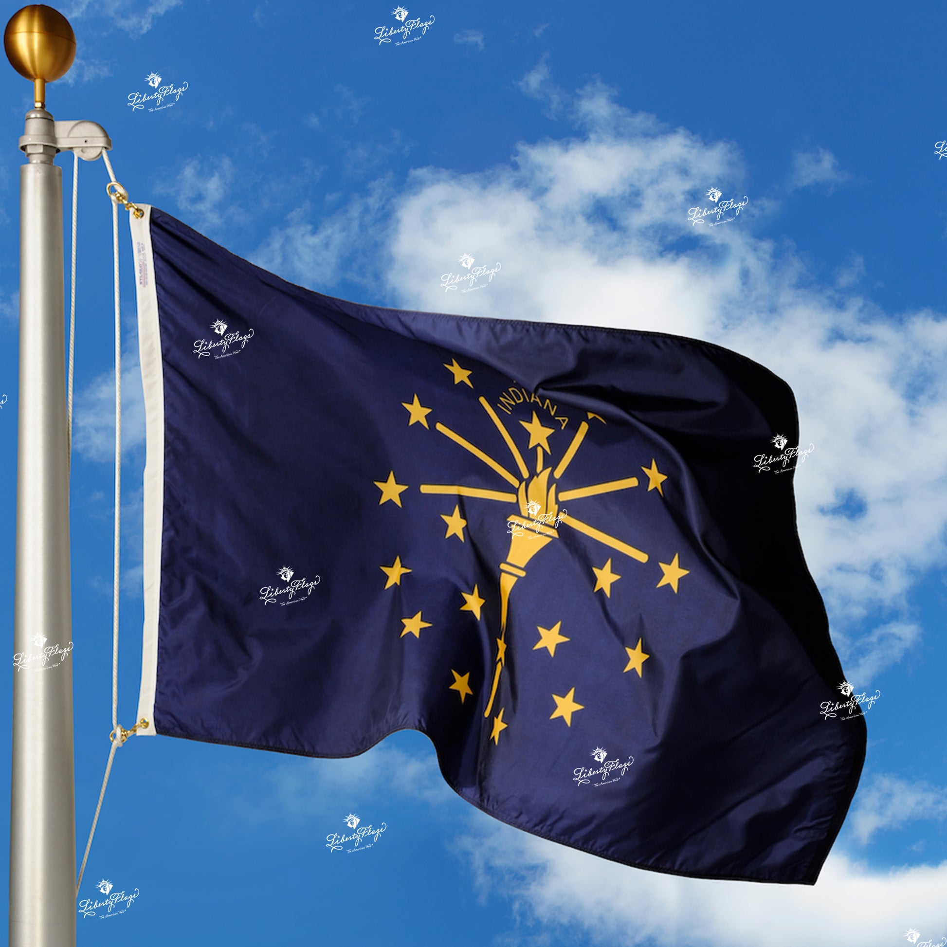 Liberty Flags’ Polyester Indiana flag is made from 2x2-ply spun and woven polyester fabric. This fabric is approximately 30% heavier than nylon and the unique fabric weave allows some air to pass through the flag as it flies in the wind. Best performing in high winds and extreme weather.