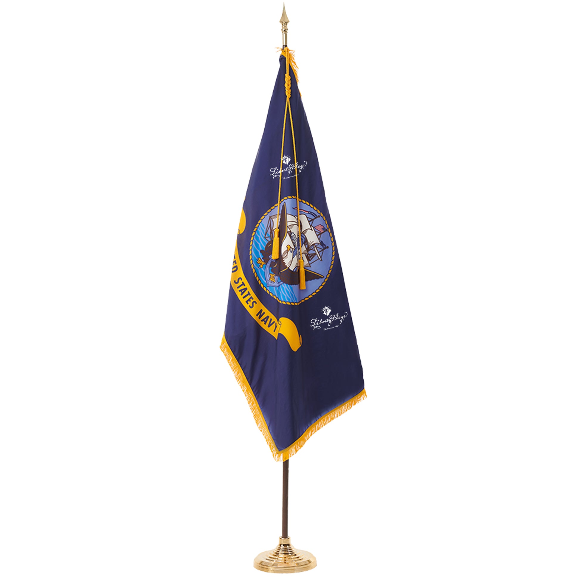 Sets include ceremonial flag - gracefully tapered furniture-grade finish 2-piece hardwood pole with solid brass screw-joint - golden yellow rayon cord with tassels – ornament