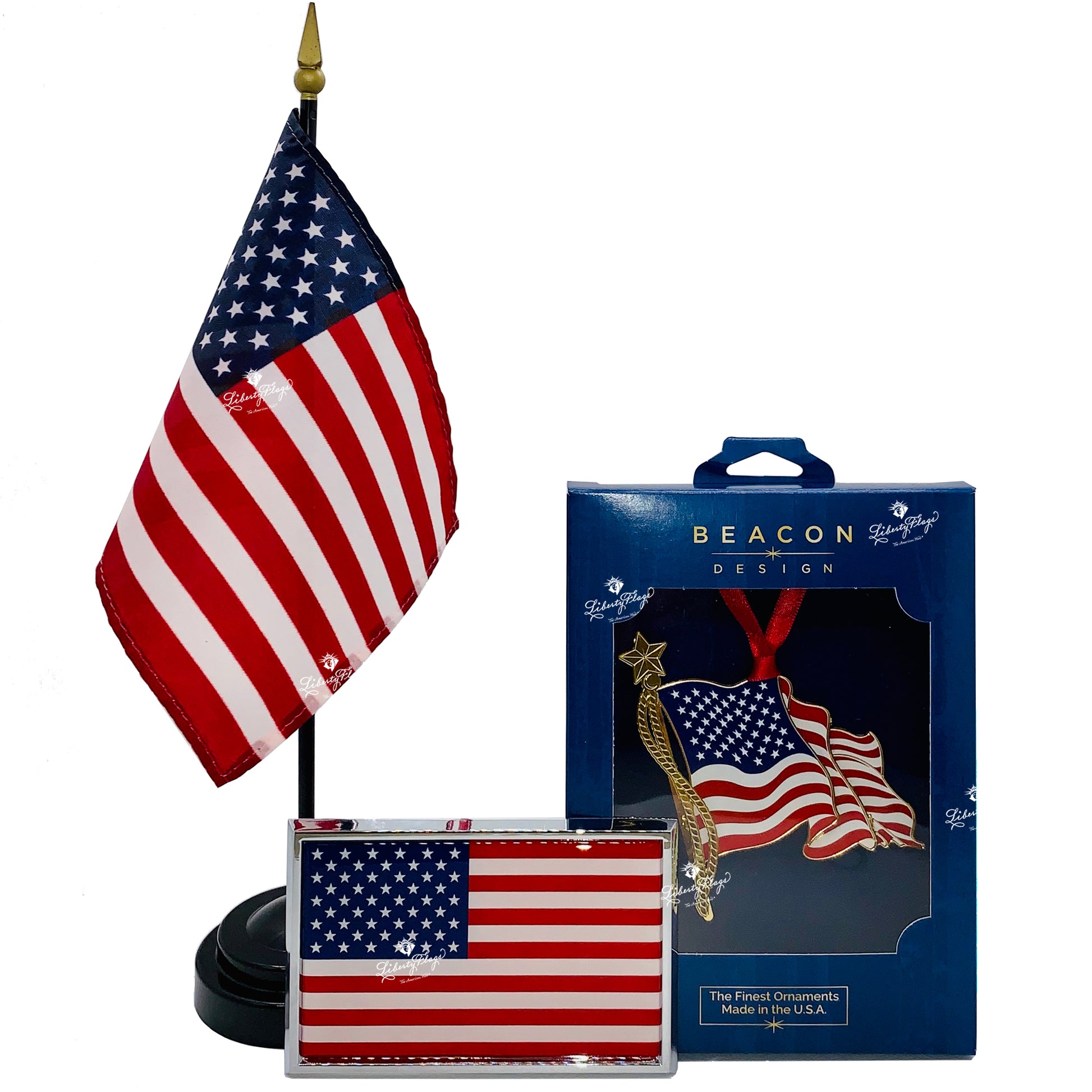 A unique American patriotic gift idea full of American-made gear! Why not an American flag for his or her desk, automobile, and Christmas tree?