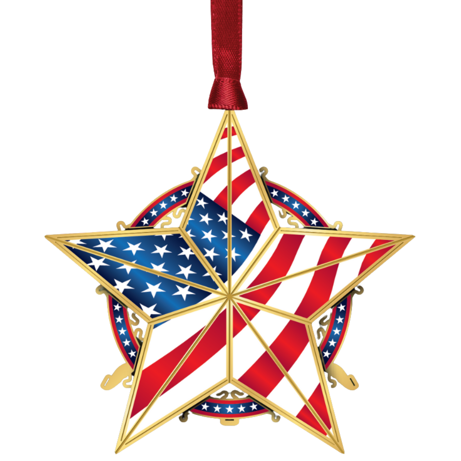 This ornate flag-star ornament is carefully handcrafted in solid brass and finished in 24K gold.
