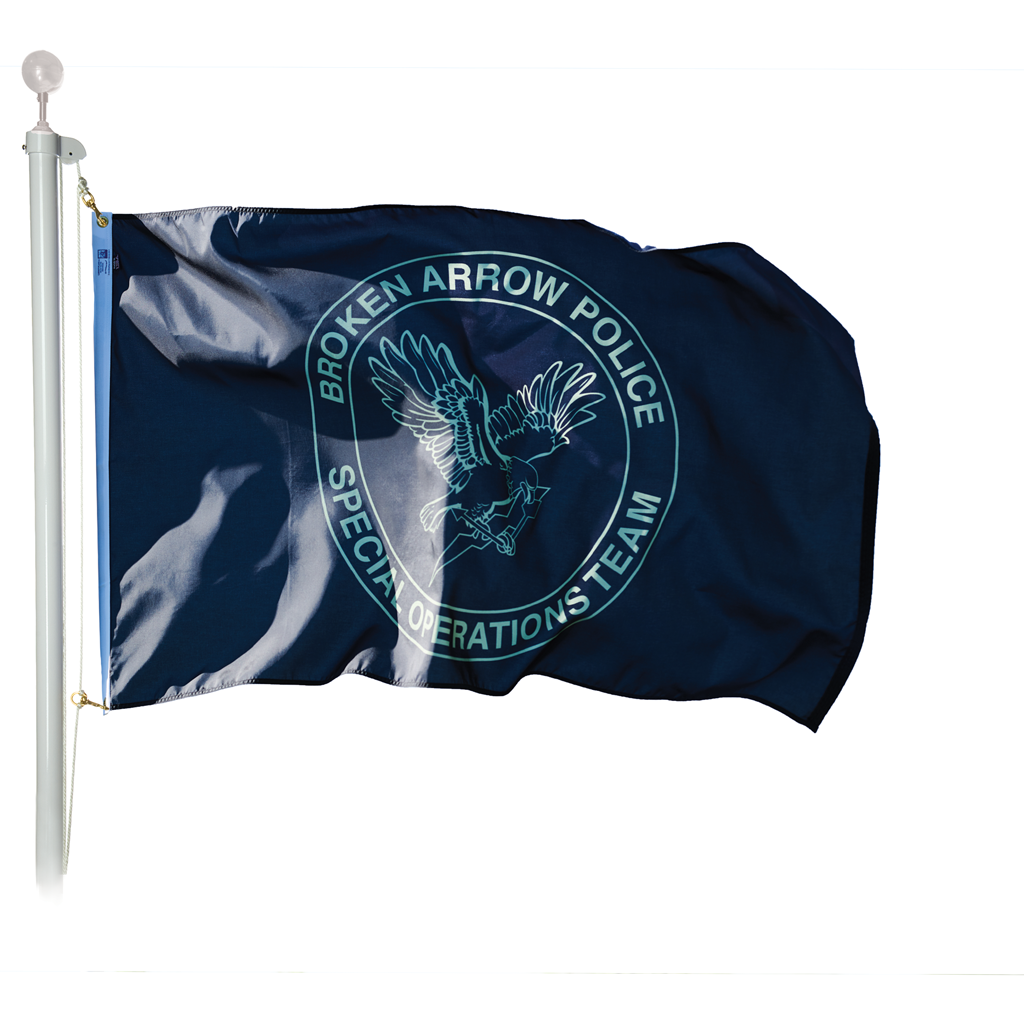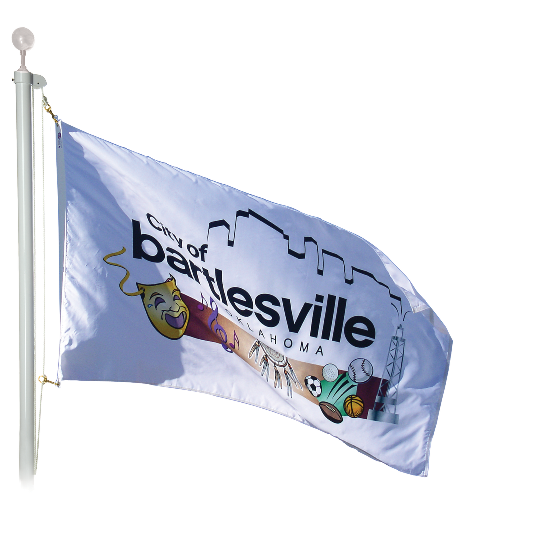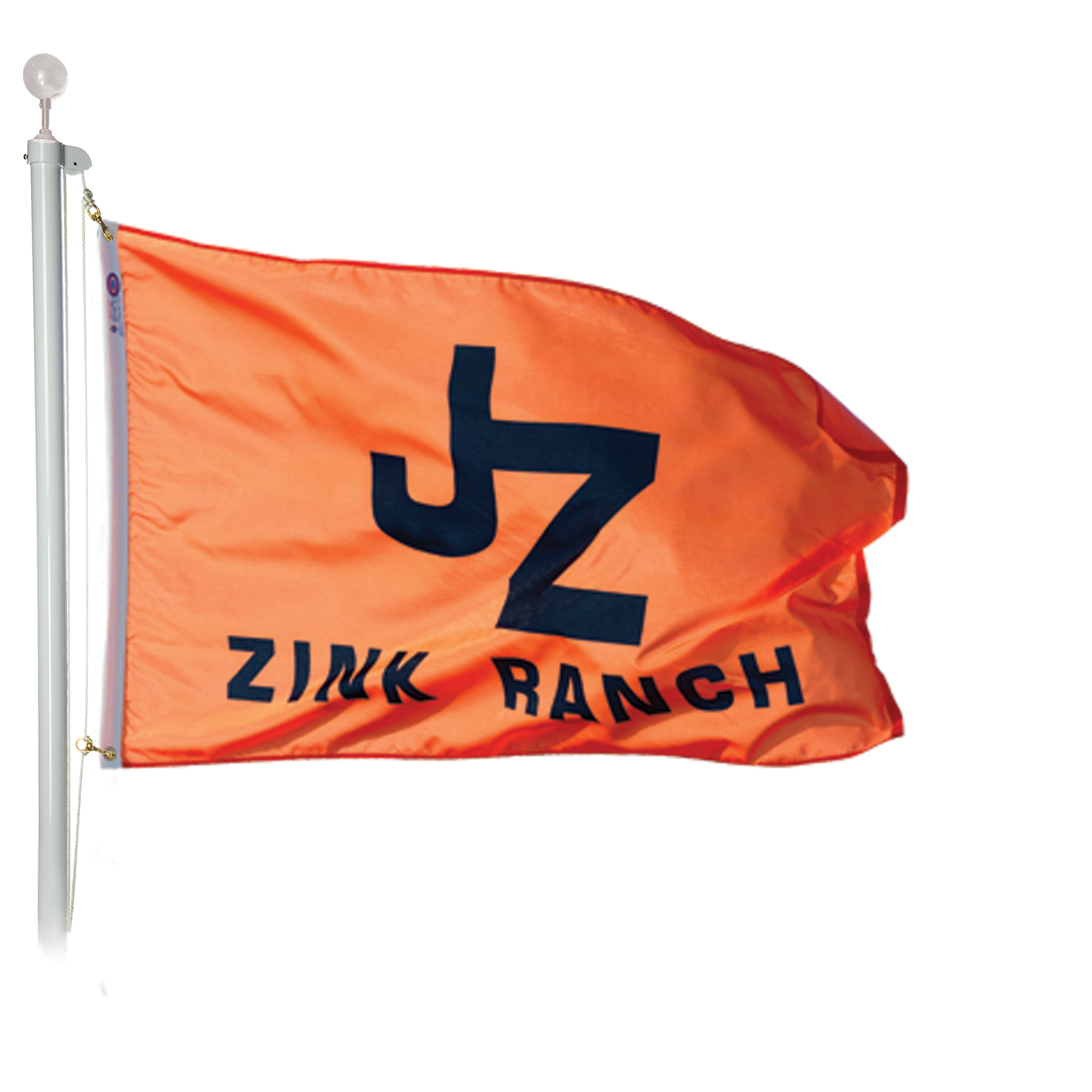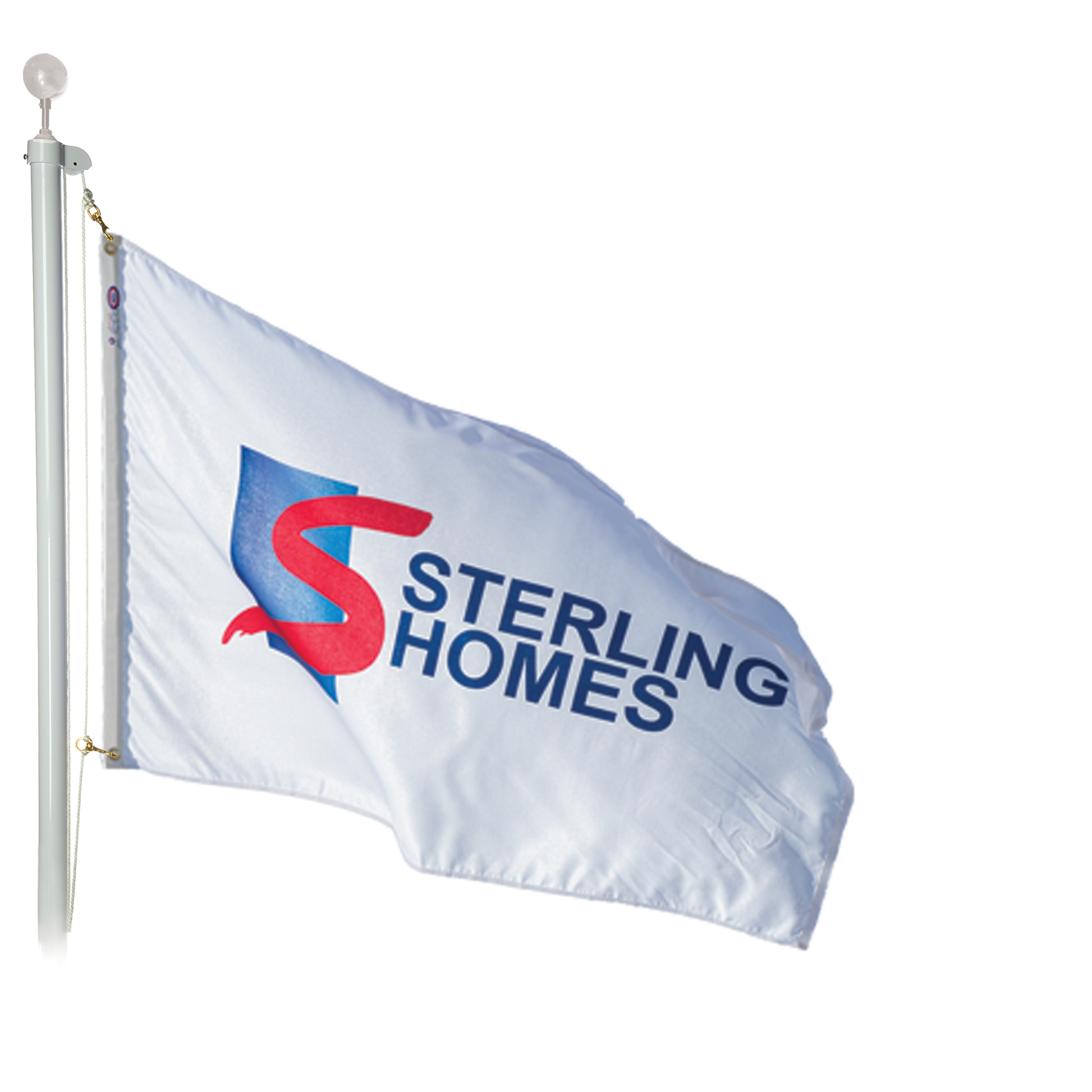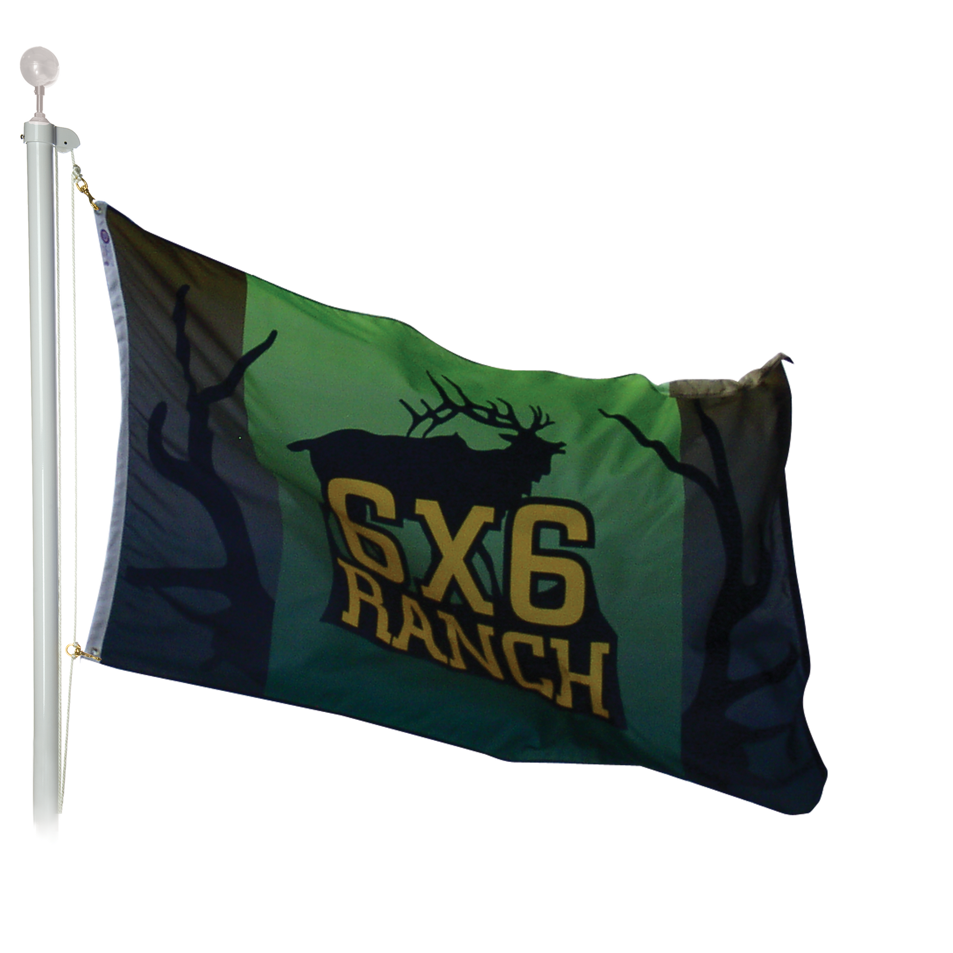 Custom printed Rectangle outdoor flags size 2'x3' to 10'x15 made from 200-denier weight nylon. Sizes 8'x12' and larger include heavy duty heading with galvanized thimbles to protect rope ends.
