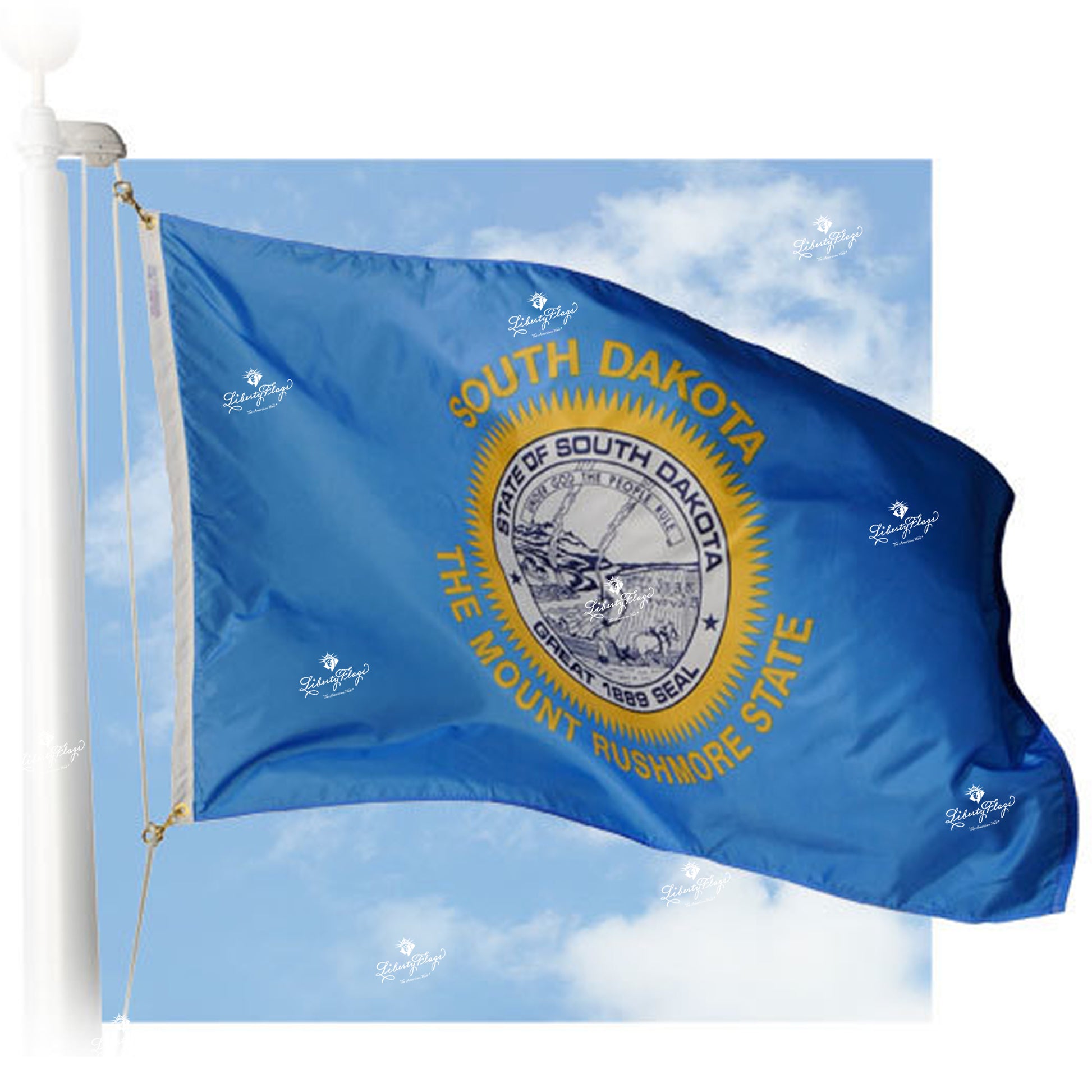 Liberty Flags’ Nylon South Dakota flag is made from our best-selling flag fabric; 200-denier weight nylon – versatile & fade resistant, strong yet light-weight.
