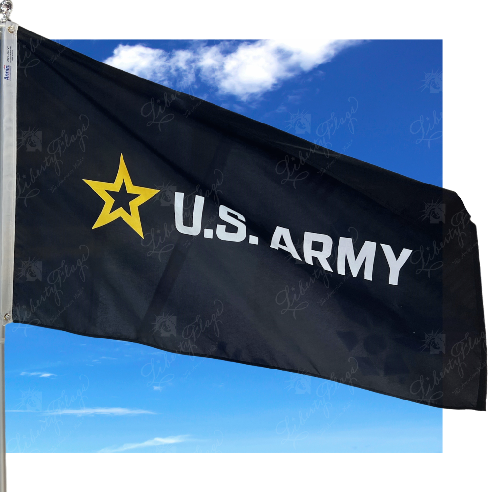 The Army Star logo flag design features a yellow, 5-pointed star and the phrase, "U.S. Army" in white; all centered in a field of black. The U.S. Army logo is the most recognizable U.S. military branch logo and is registered with the U.S. Patent and Trademark Office.